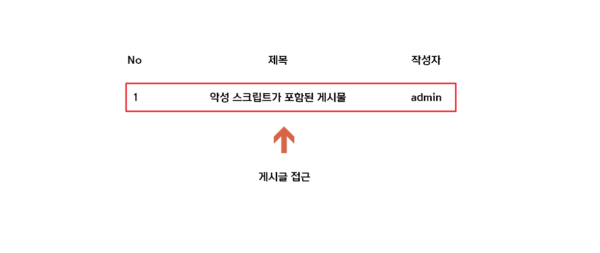 공격자가 게시판이나 댓글로 악성 스크립트를 삽입 한 후 웹 애플리케이션의 데이터베이스나 저장소에 저장되고, 다른 사용자들은 해당 게시판이나 댓글에 접근 할 경우 악성 스크립트가 실행되어 사용자의 세션 쿠키, 토큰 등 중요 정보가 노출된다.